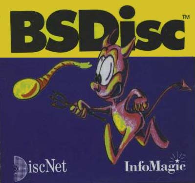 これは InfoMagic の BSDisc で、FreeBSD 2.0 と NetBSD 1.0 を 1 枚の CD に収録したものです。私が持っている中では、表紙に絵が 描かれているのは これ 1 枚だけです。 |
