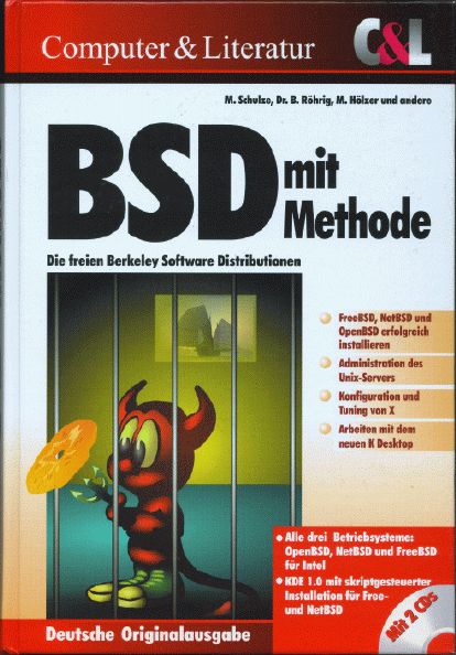 M. Schulze、B. Roehrig、M. Hoelzer und andere による、 BSD mit Methode です。C&L Computer und Literatur Verlag から 1998 年に発行されました。850 ページ。2 枚の CDROM に、FreeBSD 2.2.6、 NetBSD 1.2.1 と 1.3.2、OpenBSD 2.2 と 2.3 が収録されています。98 ドイツマルク。 |