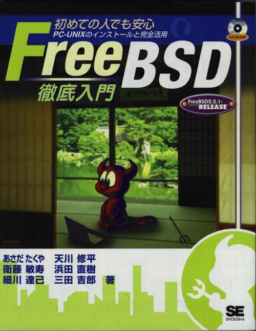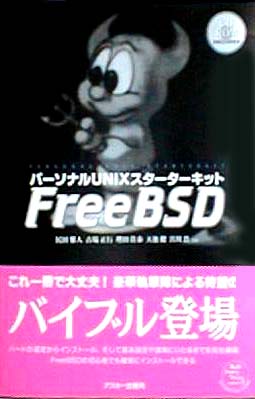 ASCII の "パーソナル Unix スターターキット - FreeBSD" です。 UNIX® の歴史、日本語文書処理システムの構築ガイドや ports の作り方についても書かれています。2.1.7.1R と XFree86-3.2 が CDROM に収録されています。384 ページ、3,000 円です。 |